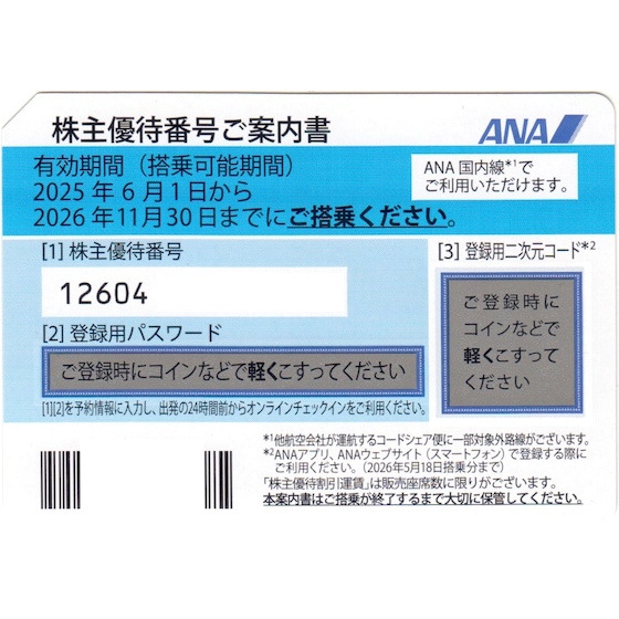 ANA(全日空) 株主優待券 有効期間 2026年11月30日まで(配送またはコード通知対応)